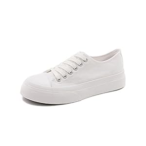 AKAAYU Womens Arch Sneakers Women Shoes Summer White Sneakers Breathable Lace-Up Sport Running Tennis Canvas Shoes (Color : White, Size : 4.5 UK)
